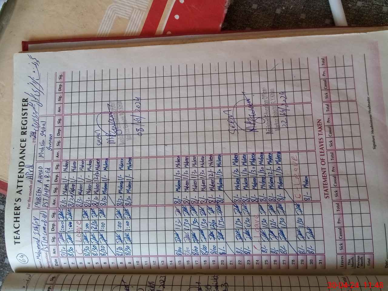 | Monitoring Date: 30-04-2024 | Start Time: 30-04-2024 11:32 AM | End Time: 30-04-2024 11:50 AM | Name of MEA: Ma**** UlHa**** | |
