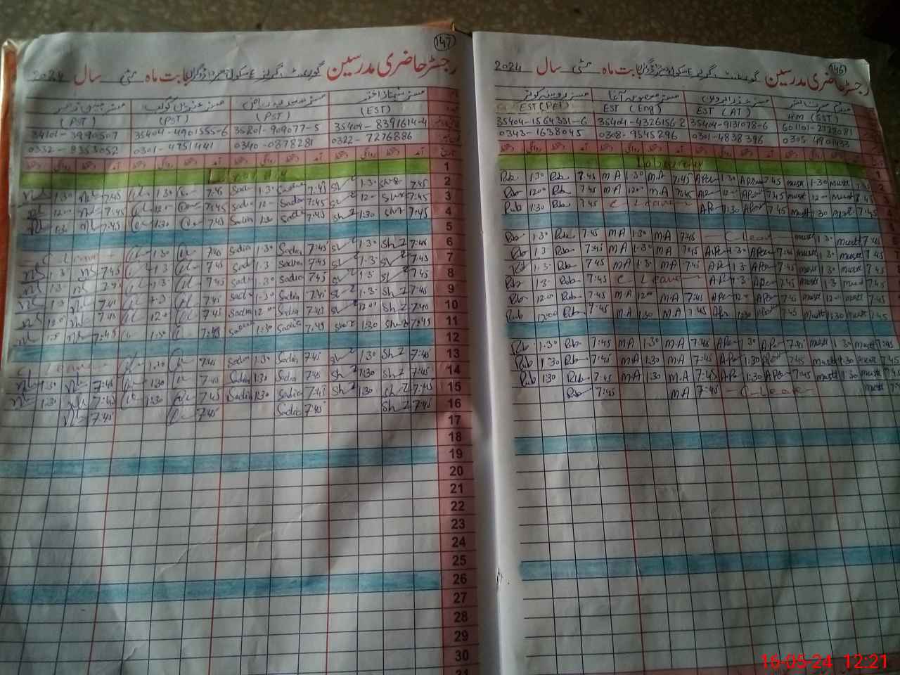 | CNIC | Full Name | Designation | R/C | Absence During Last Calender Month |
