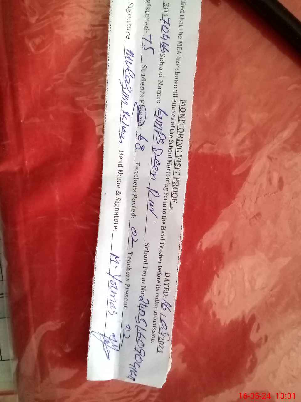 | Attendance Register | Head Teacher | MEA with School | Visit Proof |
