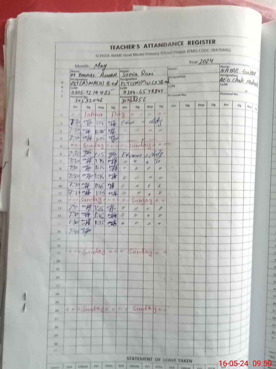| 38**** | So**** Ra**** | 1 | 1 | 0 | 0 | 0 | 0 | 0 | 0 | 0 | 0 | 0 | Exam Duty |