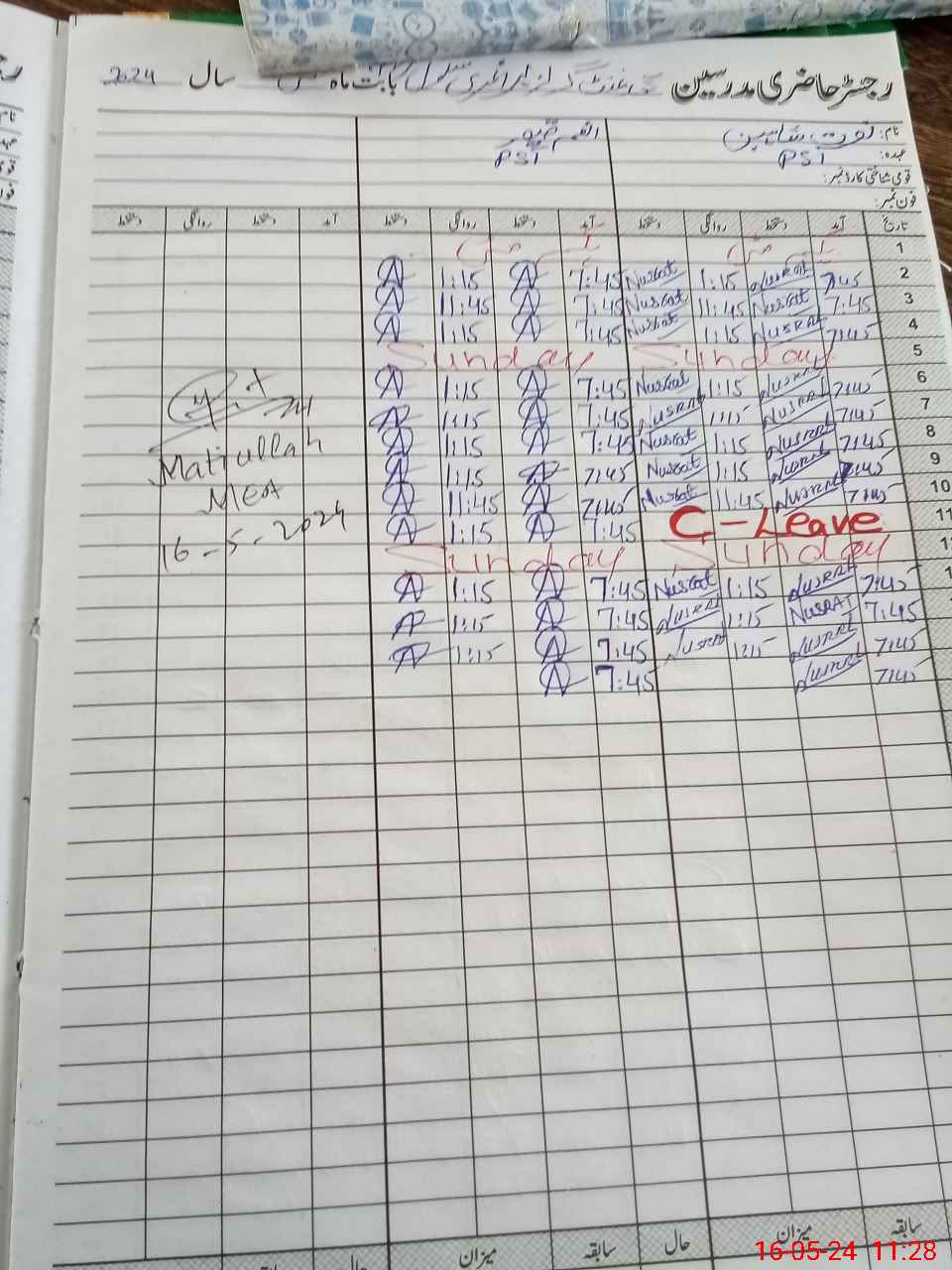 | CNIC | Full Name | Designation | R/C | Absence During Last Calender Month |