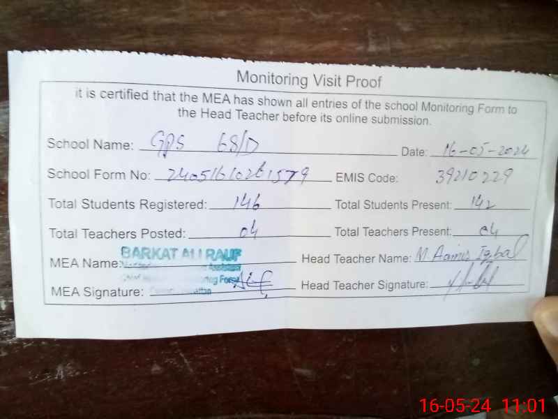 | EMIS Code: 39210229 | Name of School: GPS 68/D | |||