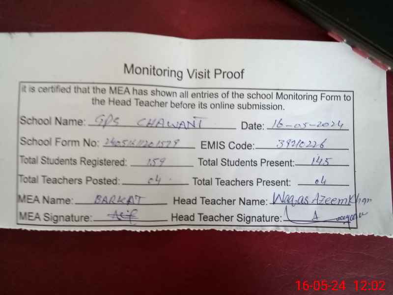 | EMIS Code: 39210226 | Name of School: GPS CHANWAT | |||