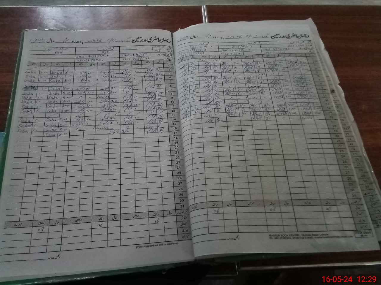 | CNIC | Full Name | Designation | R/C | Absence During Last Calender Month |