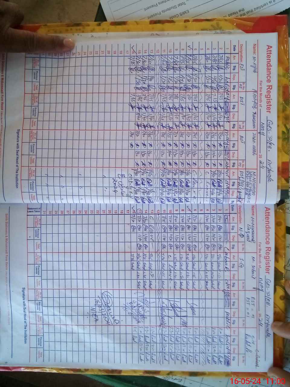 | CNIC | Full Name | Designation | R/C | Absence During Last Calender Month |