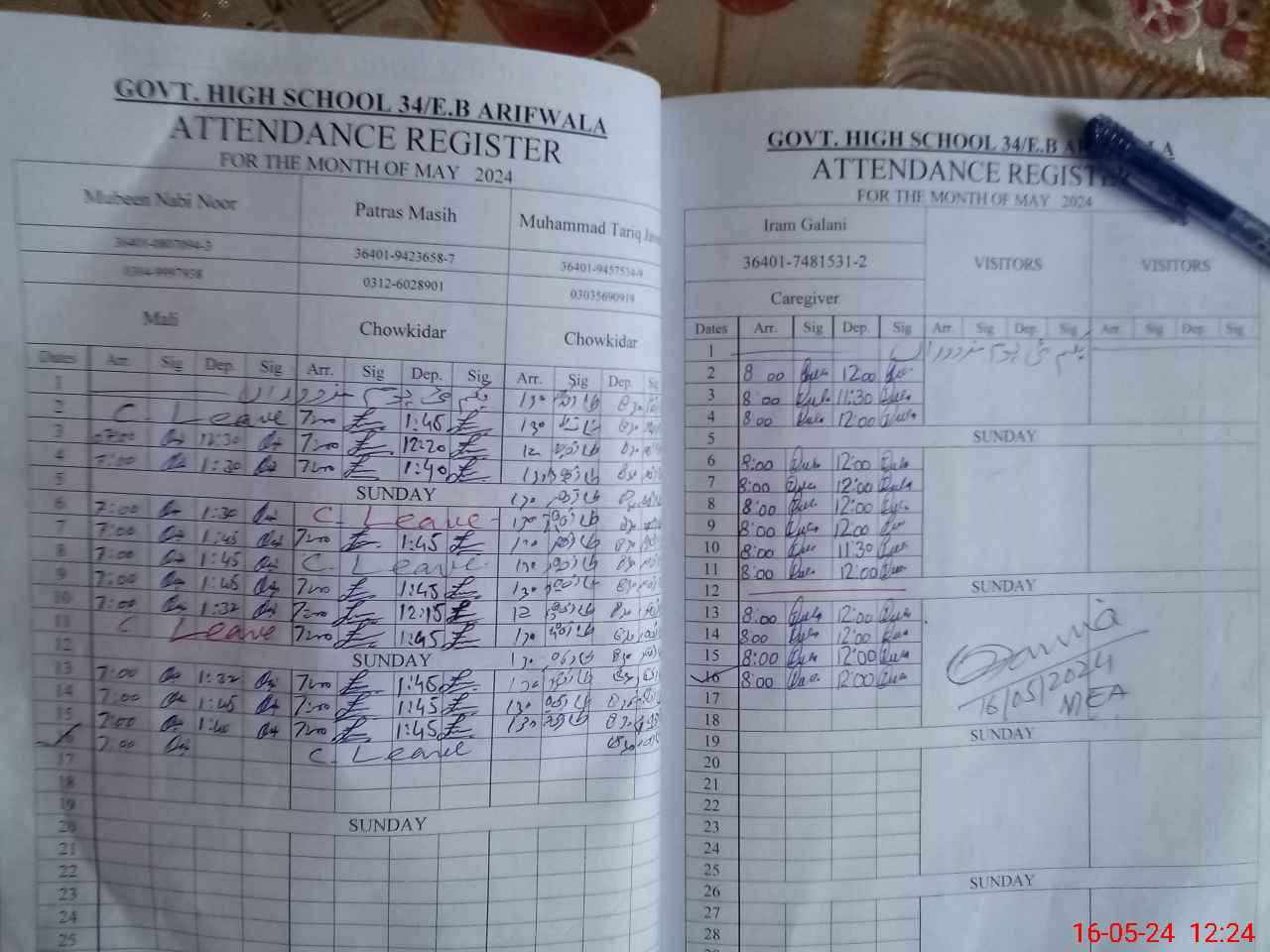 | CNIC | Full Name | Designation | R/C | Absence During Last Calender Month |