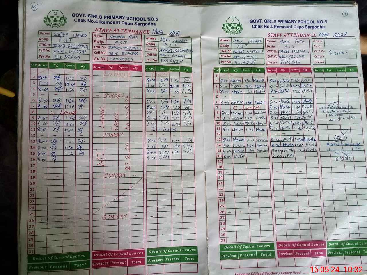 | CNIC | Full Name | Designation | R/C | Absence During Last Calender Month |