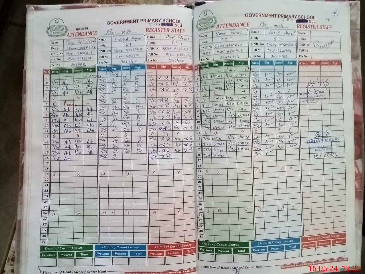 | CNIC | Full Name | Designation | R/C | Absence During Last Calender Month |
