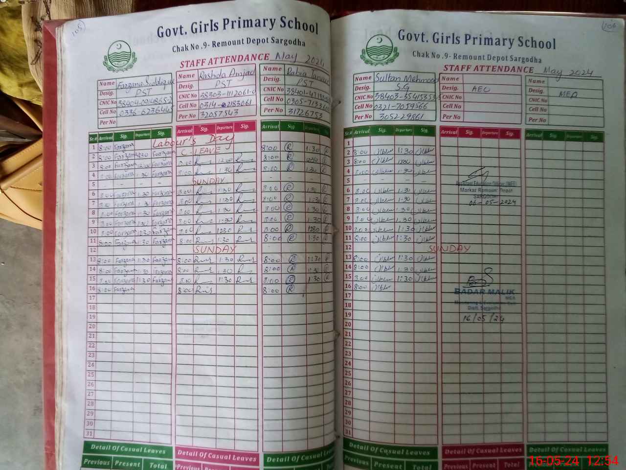| CNIC | Full Name | Designation | R/C | Absence During Last Calender Month |