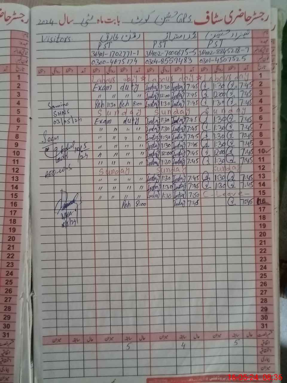 | CNIC | Full Name | Designation | R/C | Absence During Last Calender Month |