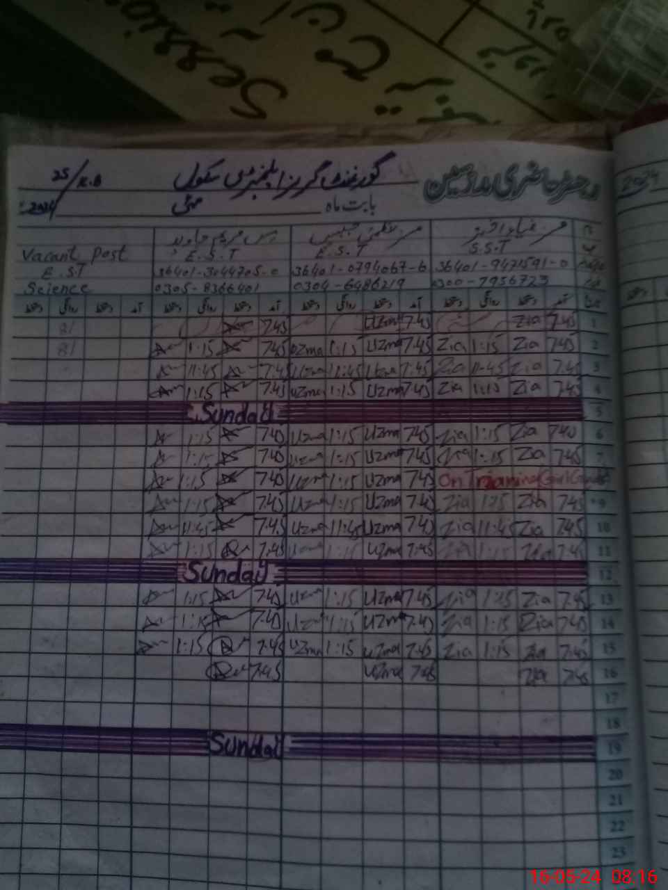 | Name: ZI**** AK**** Designation: (School Headmaster's/Headmistress's) SST (GENERAL) Phone/Cell Number: 03**** |