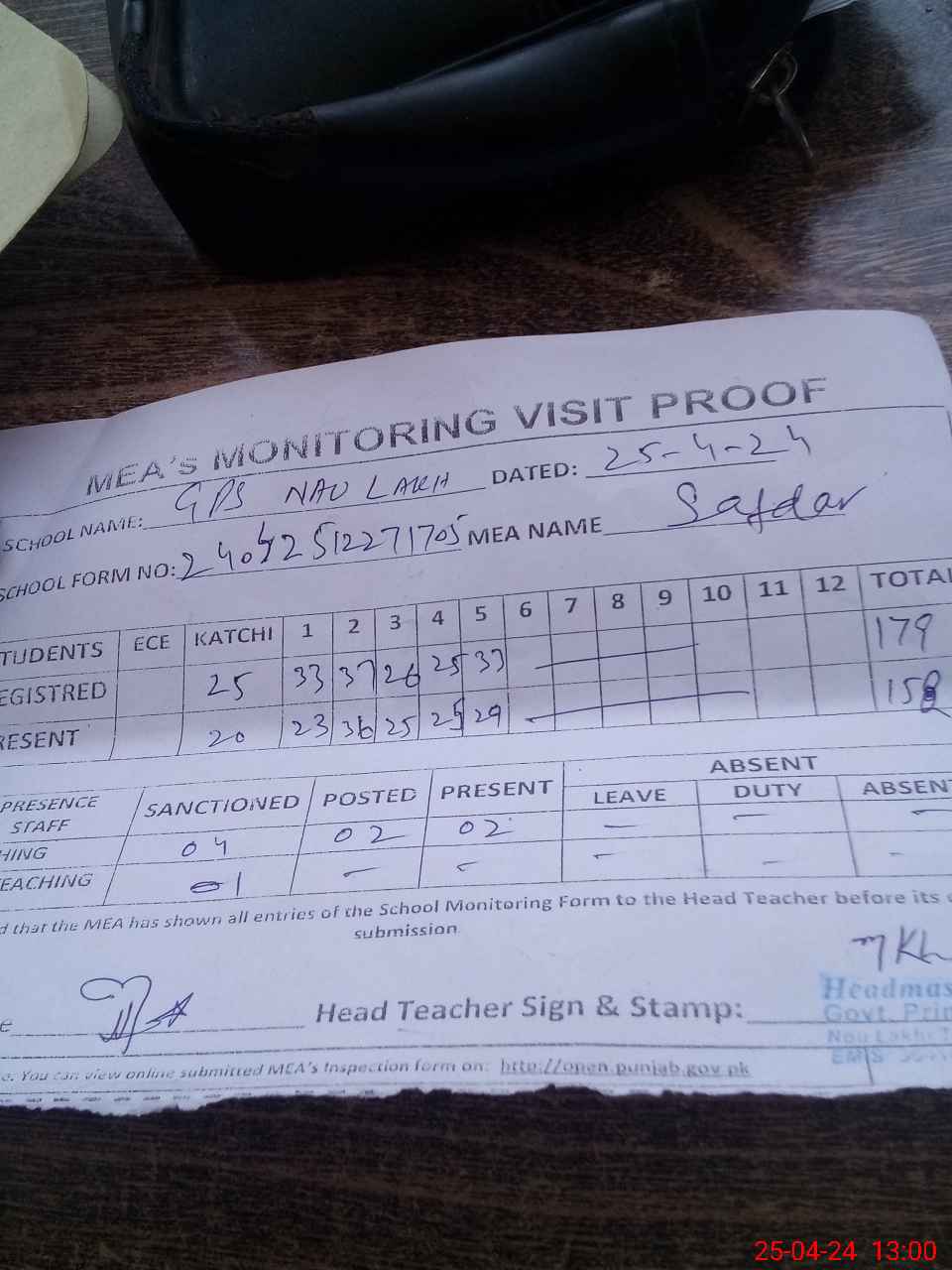 | EMIS Code: 36410526 | Name of School: GPS NAU LAKHI, P/O KOHI WALA, KABIRWALA | |||
