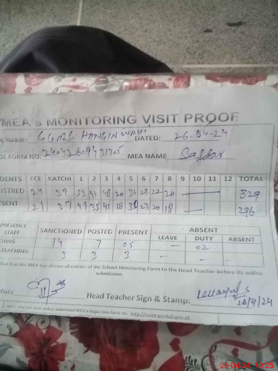 | EMIS Code: 36410502 | Name of School: GMMS HANJAN WAHI, P/O MANKOT, NAWAN SHEHR | |||