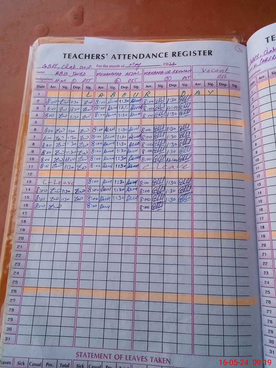 | Leave | Duty | Absent | Maternity | Medical | Ex- Pak |