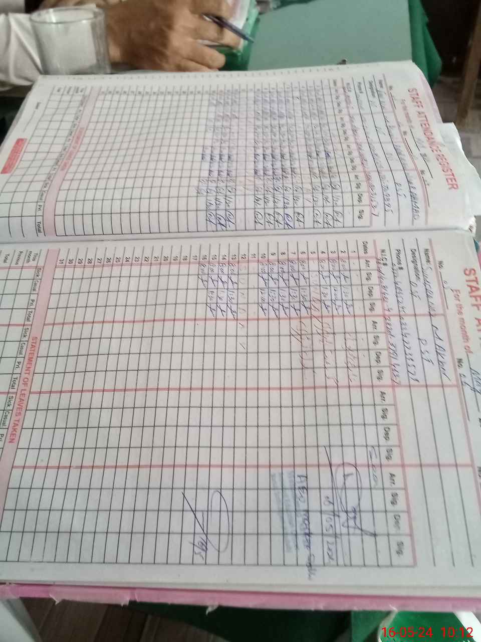 | CNIC | Full Name | Designation | R/C | Absence During Last Calender Month |
