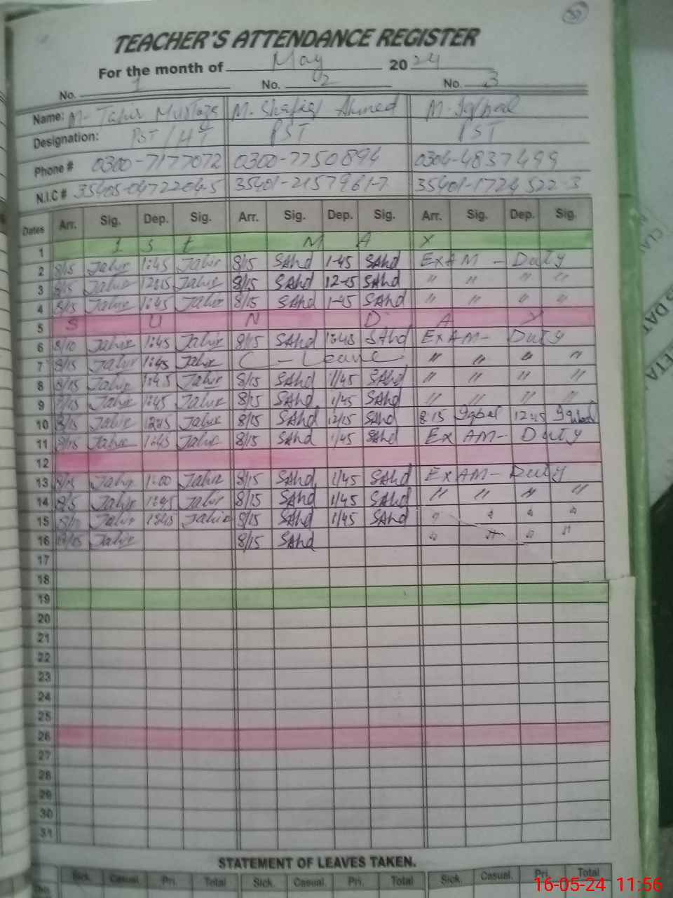 | 35**** | Mu**** Iq**** | Contract | 2 | 3 | 0 | 0 | 0 | 0 | 0 | 0 | 2 | Exam Duty | |