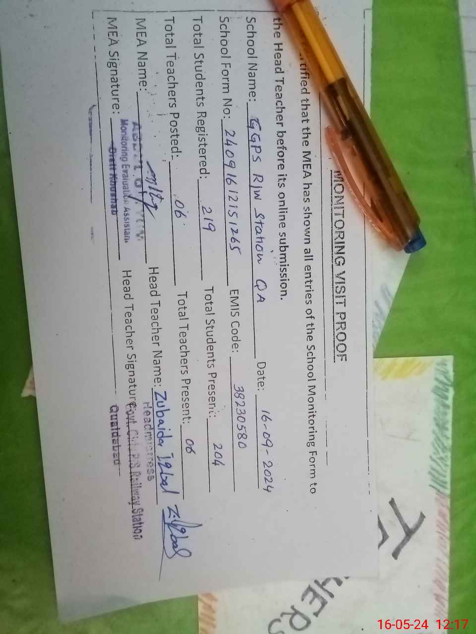| EMIS Code: 38230580 | Name of School: GGPS RAILWAY STATION QUAIDABAD | |||