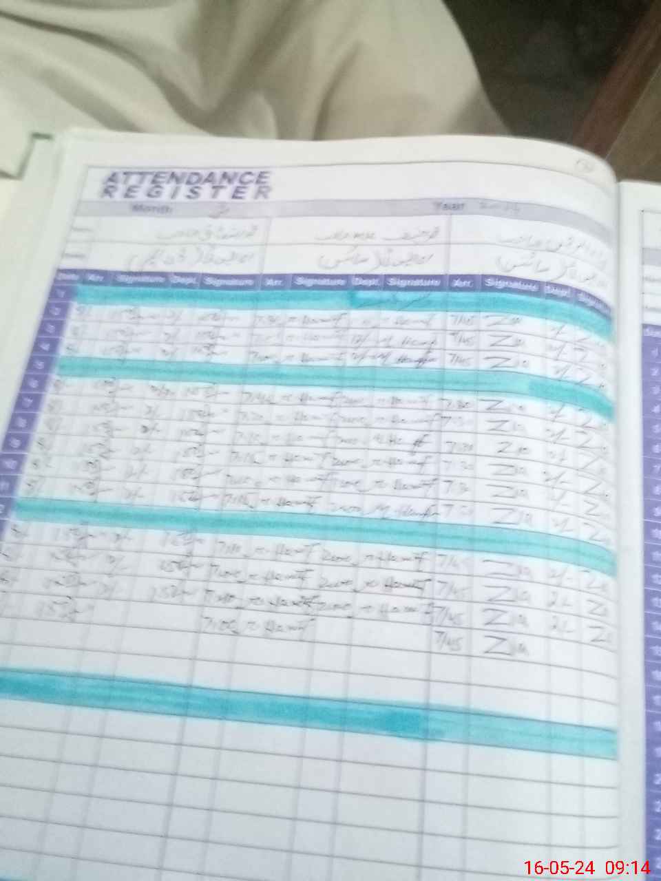 | CNIC | Full Name | Designation | R/C | Absence During Last Calender Month |
