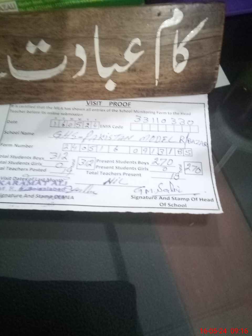 | Name: GH**** MU**** SA**** Designation: (School Headmaster's/Headmistress's) S Head Master Phone/Cell Number: 03**** |