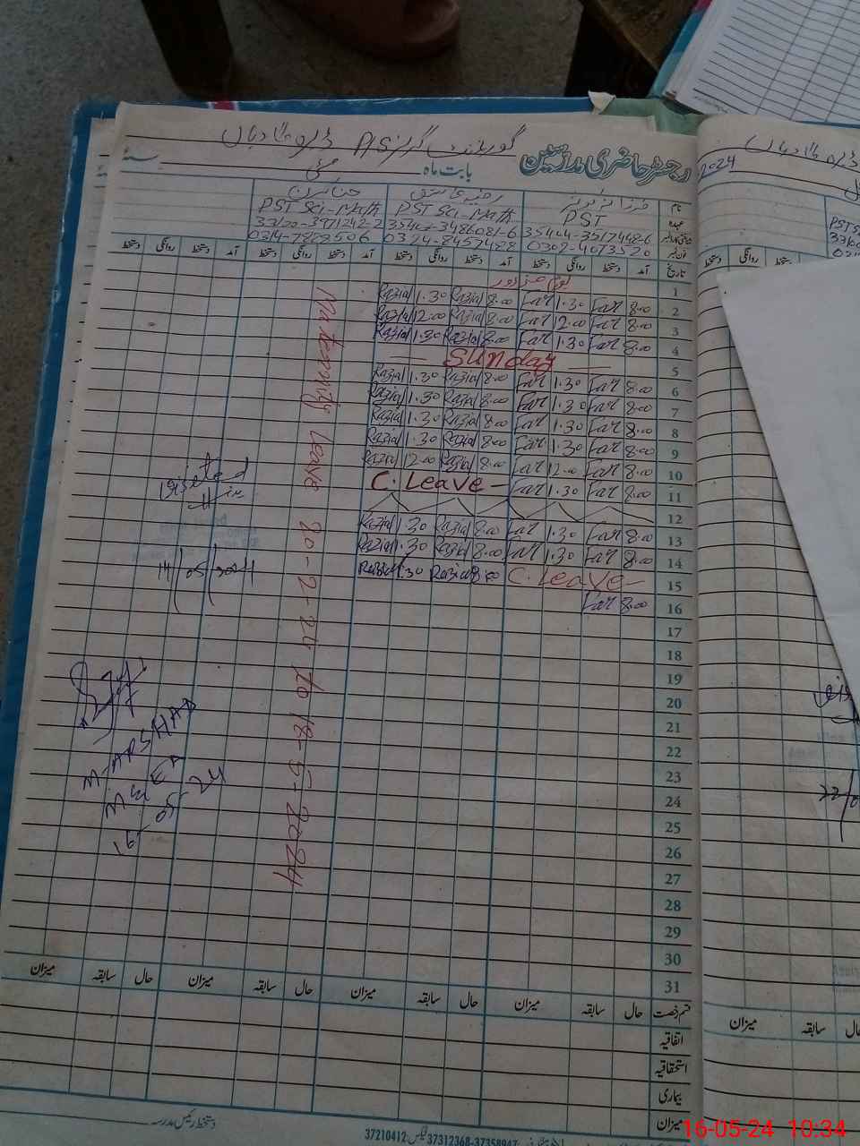 | CNIC | Full Name | Designation | R/C | Absence During Last Calender Month |