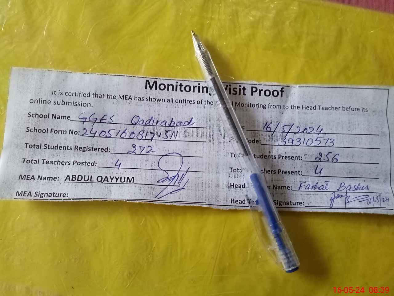 | EMIS Code: 39310573 | Name of School: GGES QADIR ABAD | |||