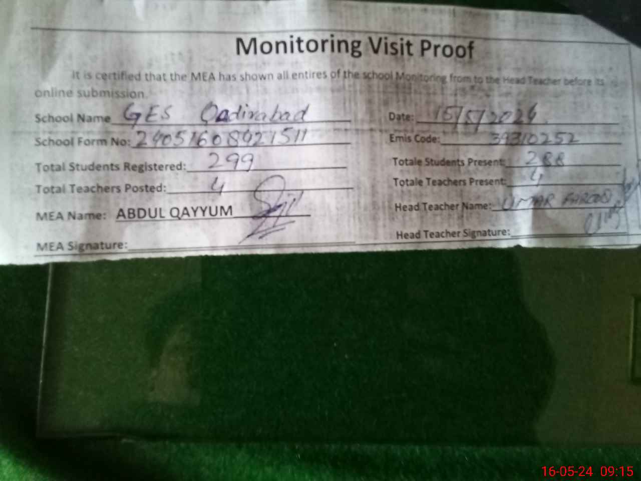 | EMIS Code: 39310252 | Name of School: GES QADIR ABAD | |||
