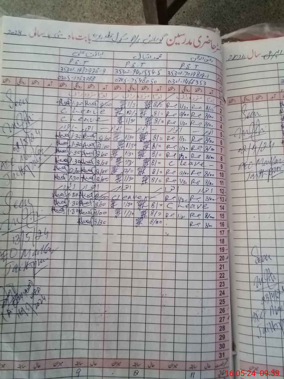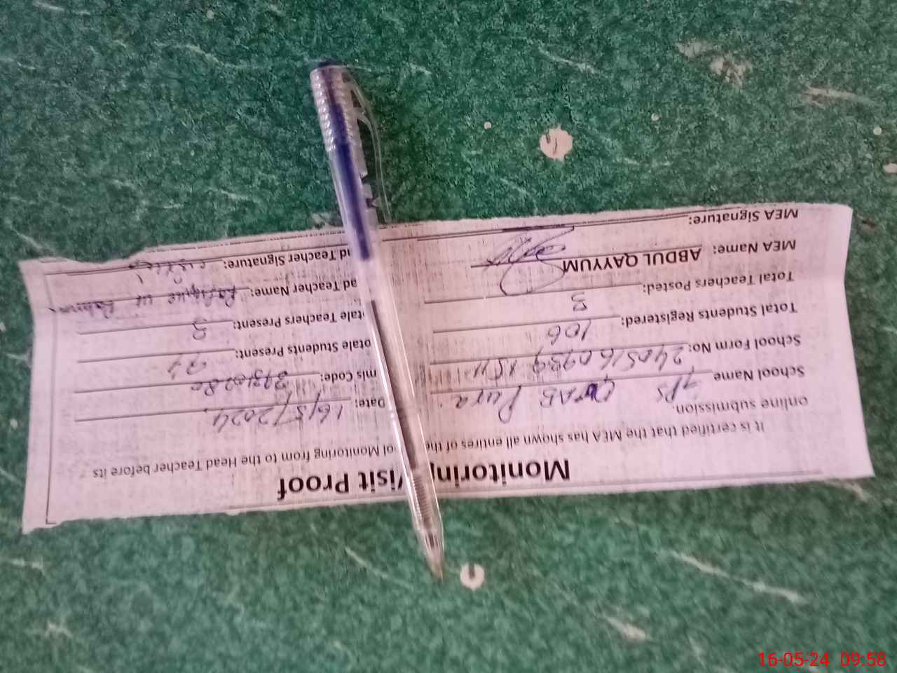 | Name: MU**** Az**** Designation: (School Headmaster's/Headmistress's) PTC/JV Phone/Cell Number: 03**** |