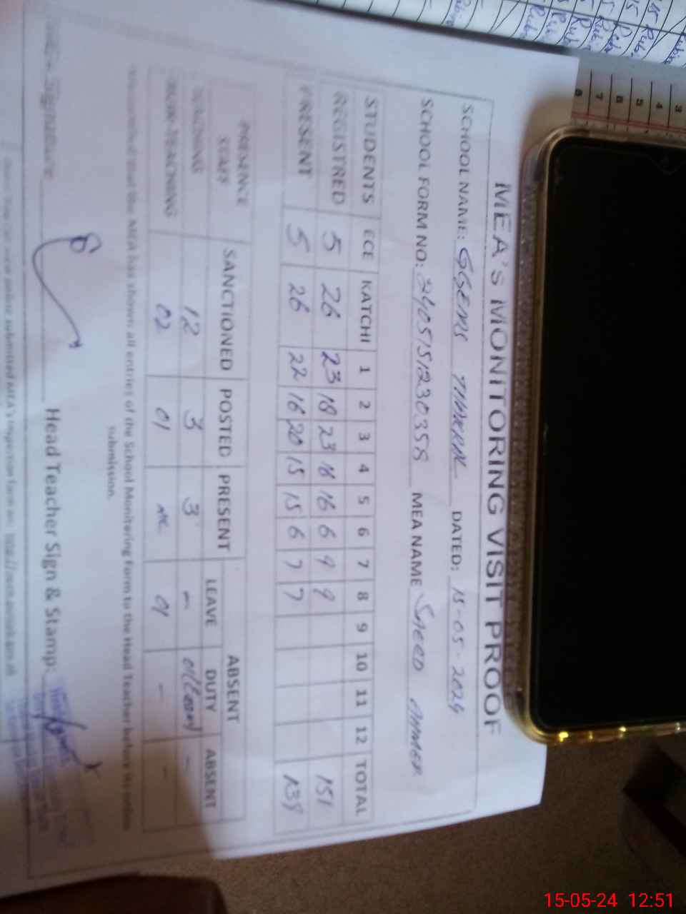 | Attendance Register | Head Teacher | MEA with School | Visit Proof |