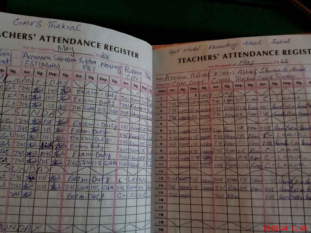 | 36**** | Si**** Na**** | PST | Regular | 1 | 5 | 0 | 0 | 0 | 0 | 0 | 0 | 1 | Exam Duty |