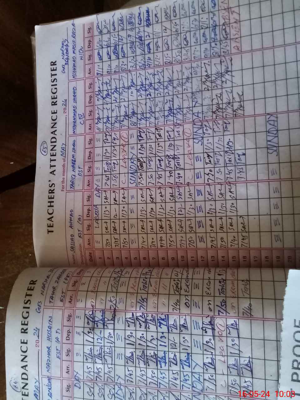 | 36**** | MU**** WA**** RA**** | NAIB QASID | 0 | 0 | 0 | 0 | 0 | 0 | 0 | 0 | 0 | Absent (Un-Authorized) | |