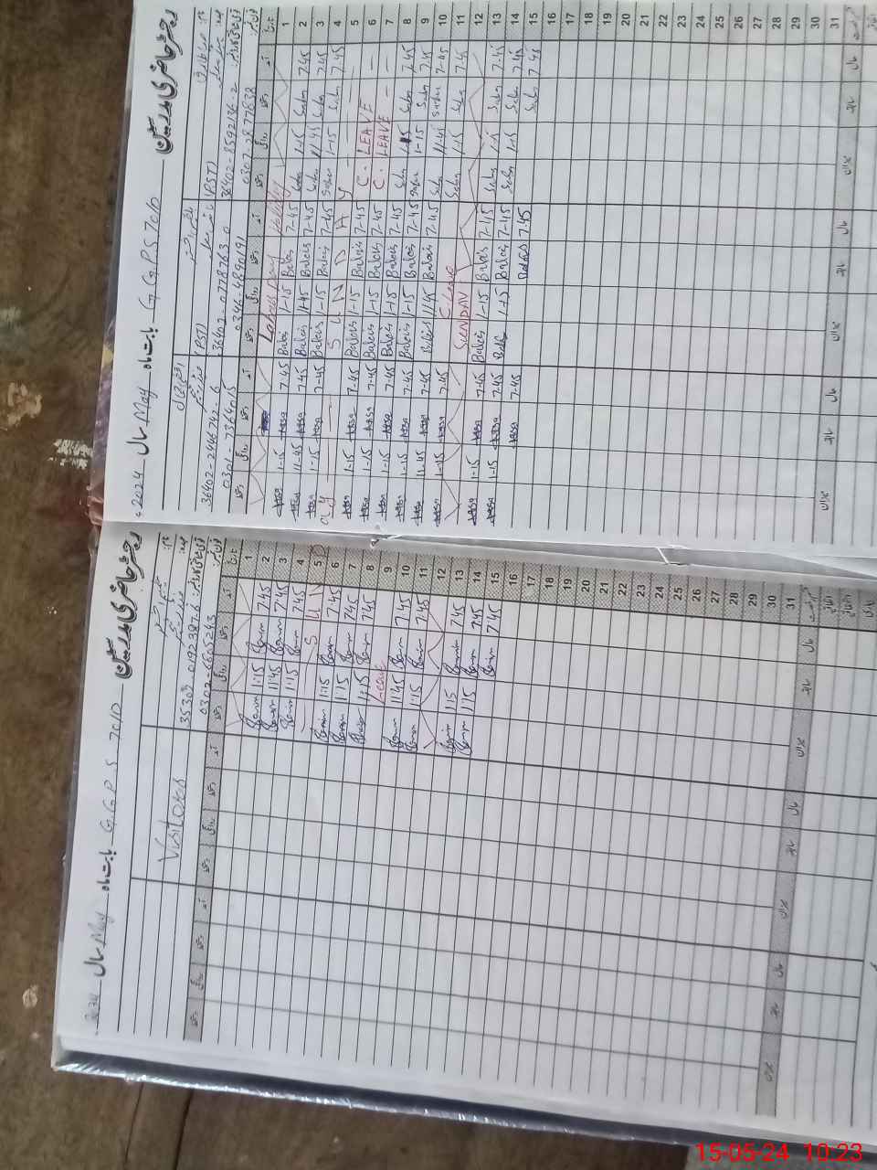 | CNIC | Full Name | Designation | R/C | Absence During Last Calender Month |