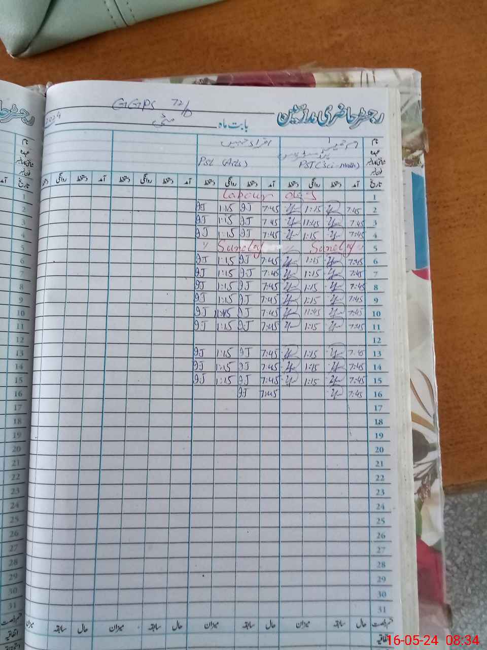 | CNIC | Full Name | Designation | R/C | Absence During Last Calender Month |