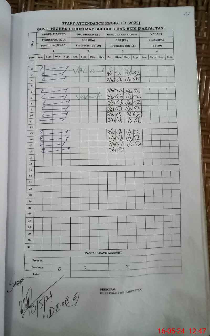 | 36**** | Qa**** Ya**** | Regular | 1 | 14 | 0 | 0 | 0 | 0 | 0 | 0 | 1 | Exam Duty | |