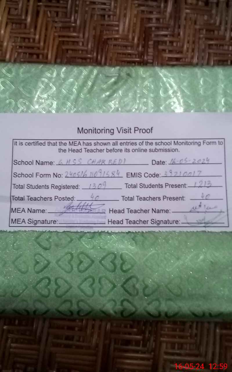 | EMIS Code: 39210017 | Name of School: GHSS CHAK BEDI | |||