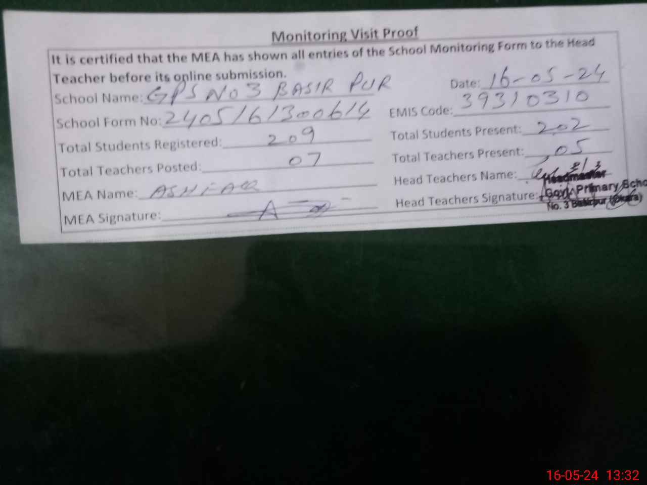 | EMIS Code: 39310310 | Name of School: GPS BASIR PUR NO. 3 | |||