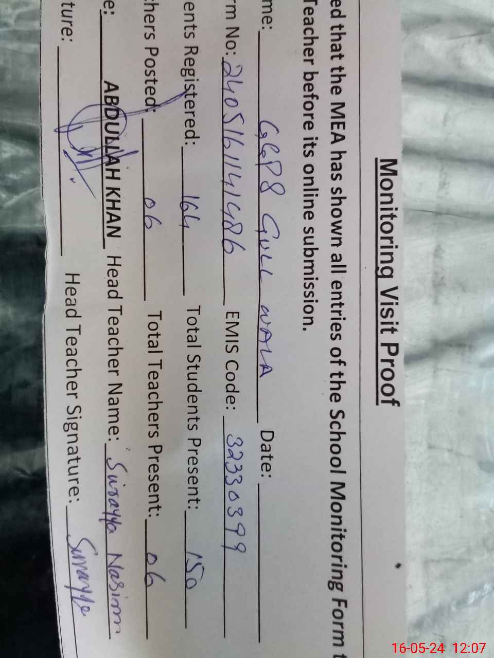 | EMIS Code: 32330399 | Name of School: GGPS GULL WALA | |||