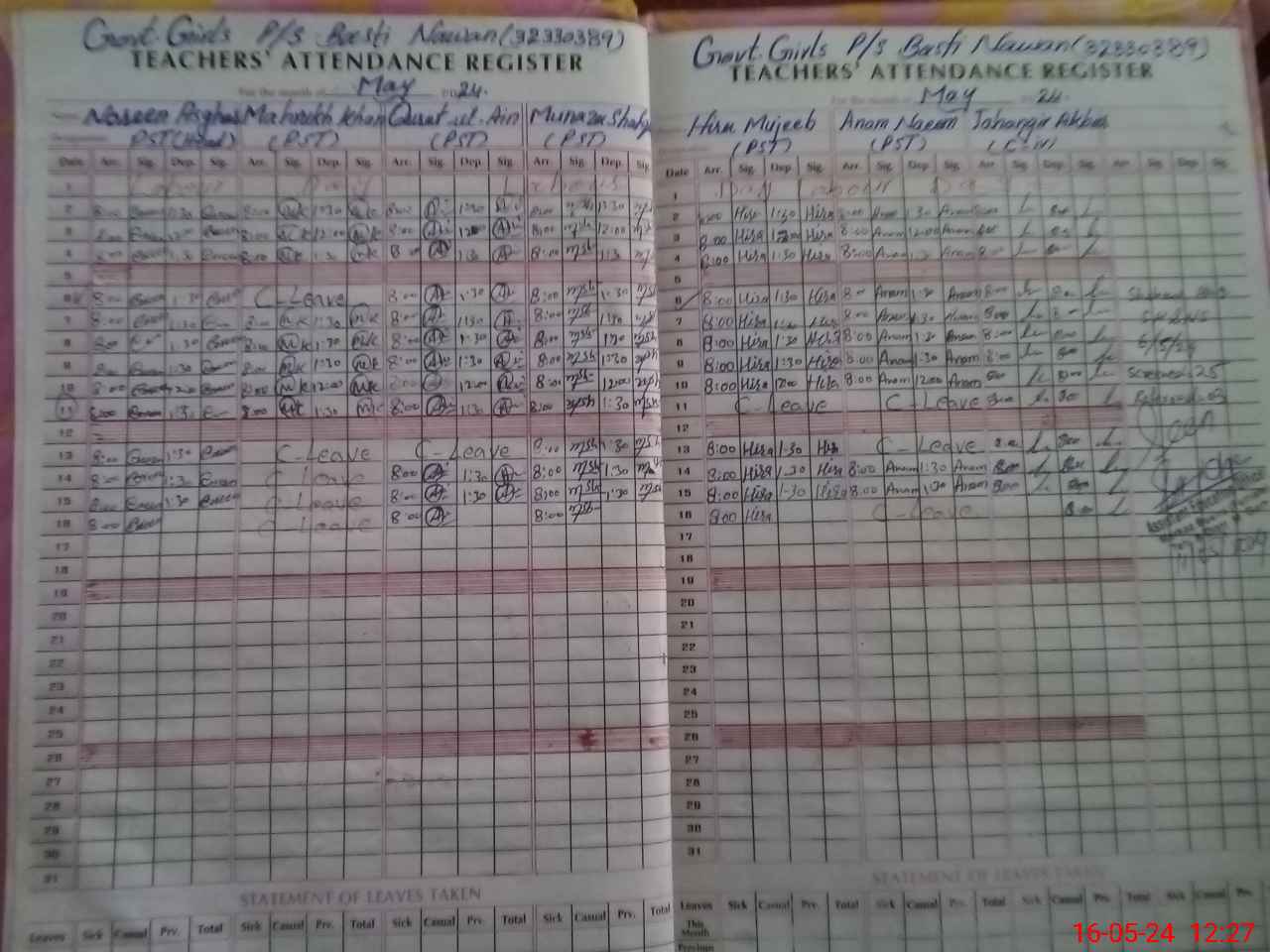 | 36**** | Ma**** Kh**** | PST | Regular | 5 | 0 | 0 | 0 | 0 | 0 | 0 | 0 | 5 | Casual |