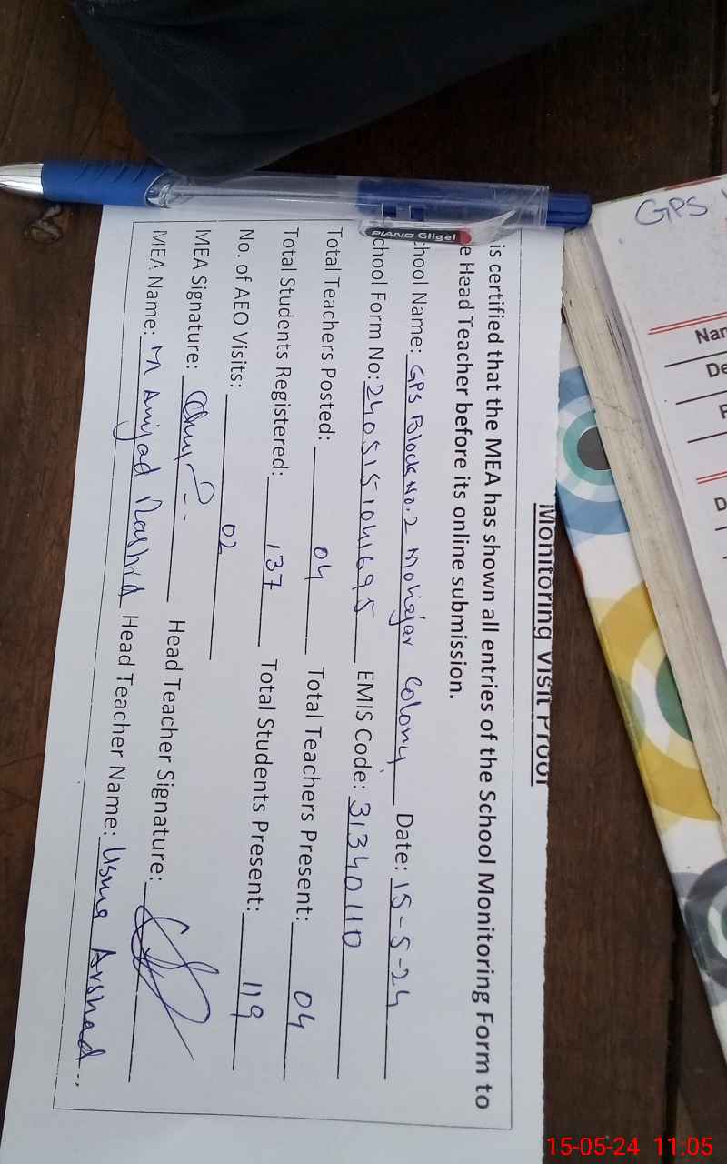 | Attendance Register | Head Teacher | MEA with School | Visit Proof |
