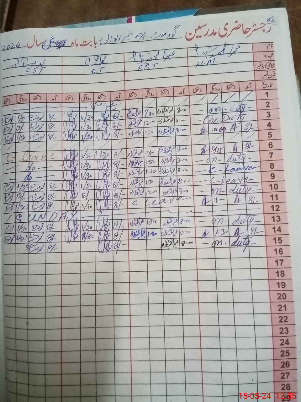 | CNIC | Full Name | Designation | R/C | Absence During Last Calender Month |
