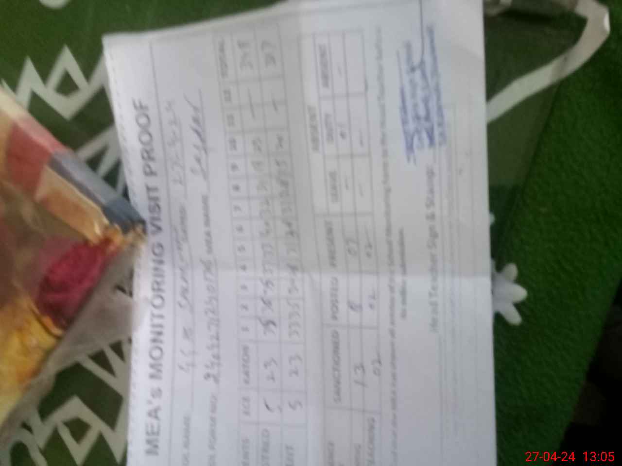 | Monitoring Date: 27-04-2024 | Start Time: 27-04-2024 12:23 PM | End Time: 27-04-2024 01:16 PM | Name of MEA: MU**** SA**** HU**** | |