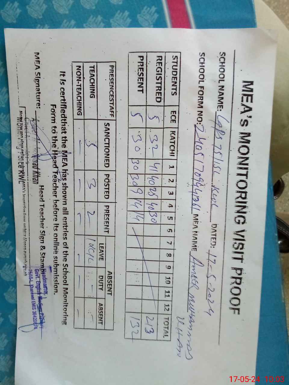 | Monitoring Date: 17-05-2024 | Start Time: 17-05-2024 09:23 AM | End Time: 17-05-2024 10:07 AM | Name of MEA: Am**** Mu**** Kh**** | |
