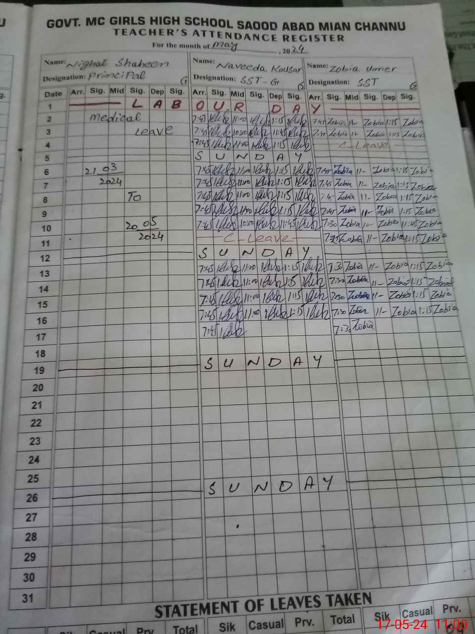| 36**** | Ni**** Sh**** | 1 | 0 | 0 | 30 | 0 | 0 | 0 | 0 | 0 | 0 | Absent (Un-Authorized) | |