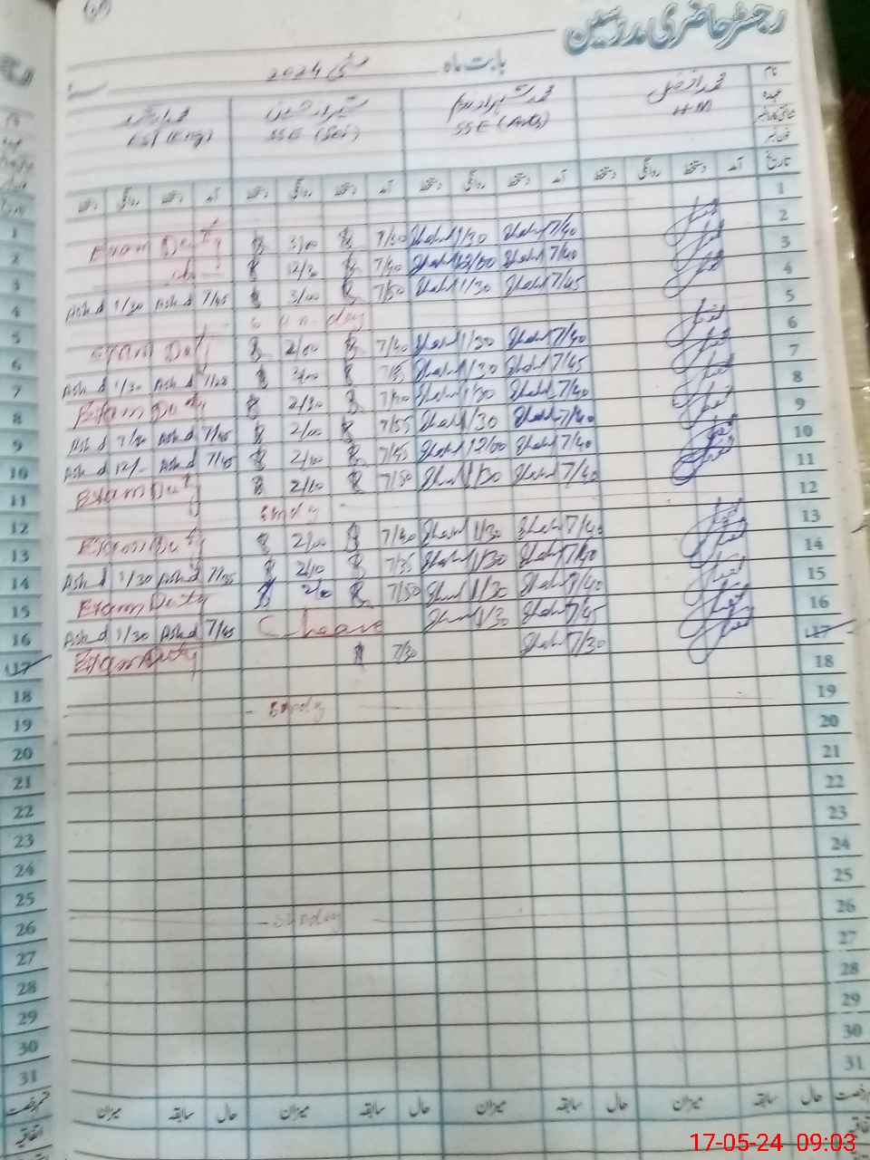 | 36**** | Mu**** Ir**** | 3 | 1 | 0 | 0 | 0 | 0 | 0 | 0 | 0 | 0 | 0 | Exam Duty |