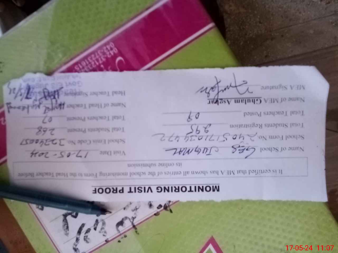 | Certified that this School was Inspected by the Undersigned MEA/DMO Today and the Information Stated Above is as Per Record. | |||||