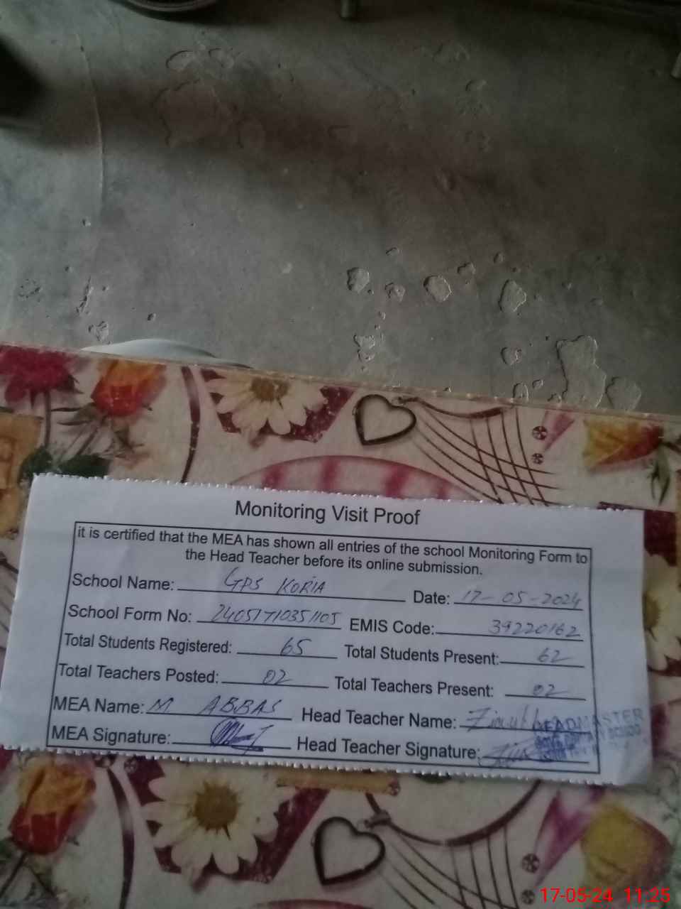 | EMIS Code: 39220162 | Name of School: GPS KORIA | |||