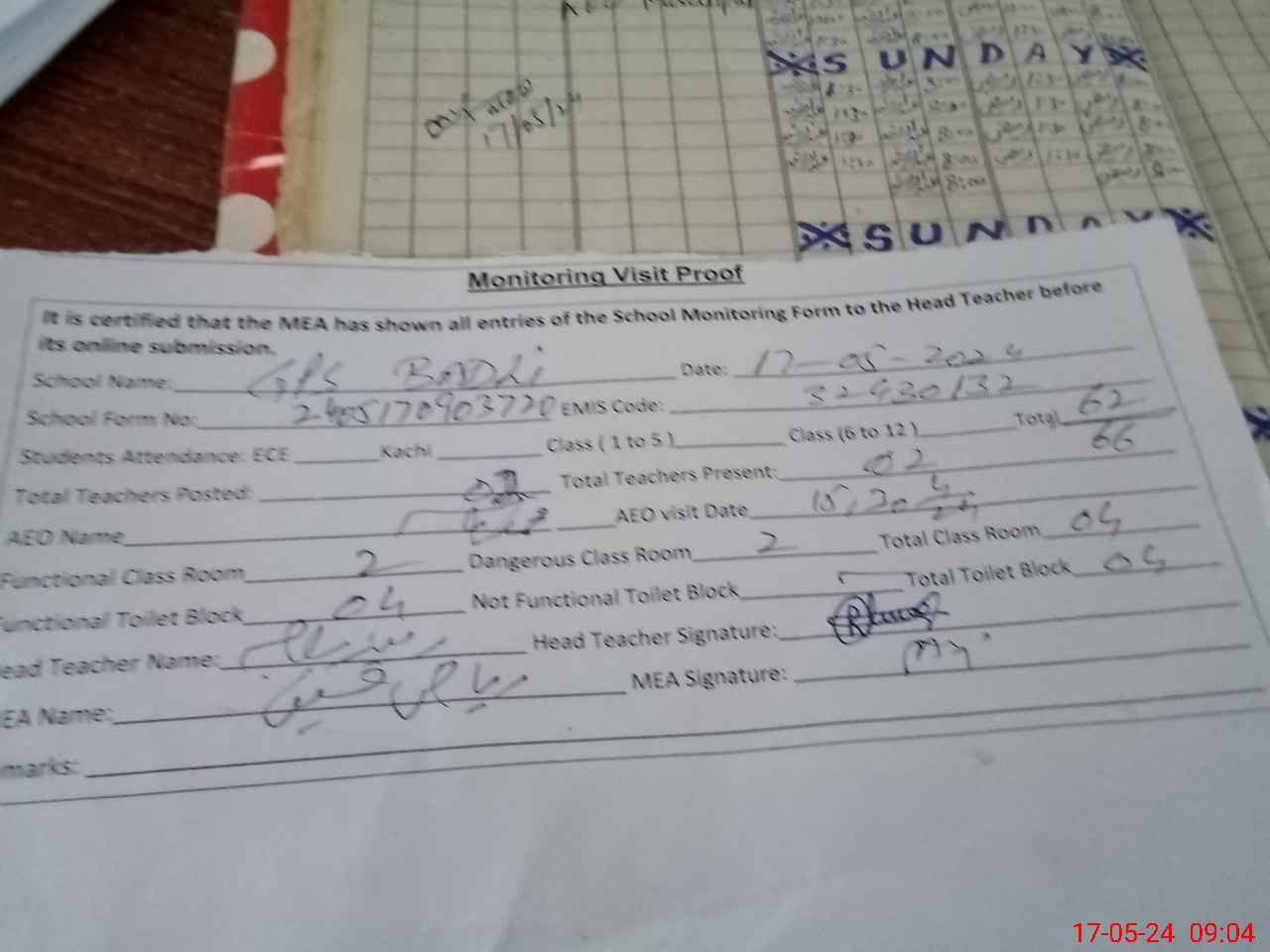 | EMIS Code: 32430132 | Name of School: GPS BADLI | |||
