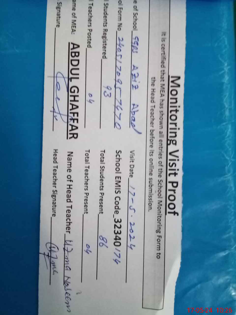 | EMIS Code: 32340174 | Name of School: GGPS AZIZ ABAD | |||