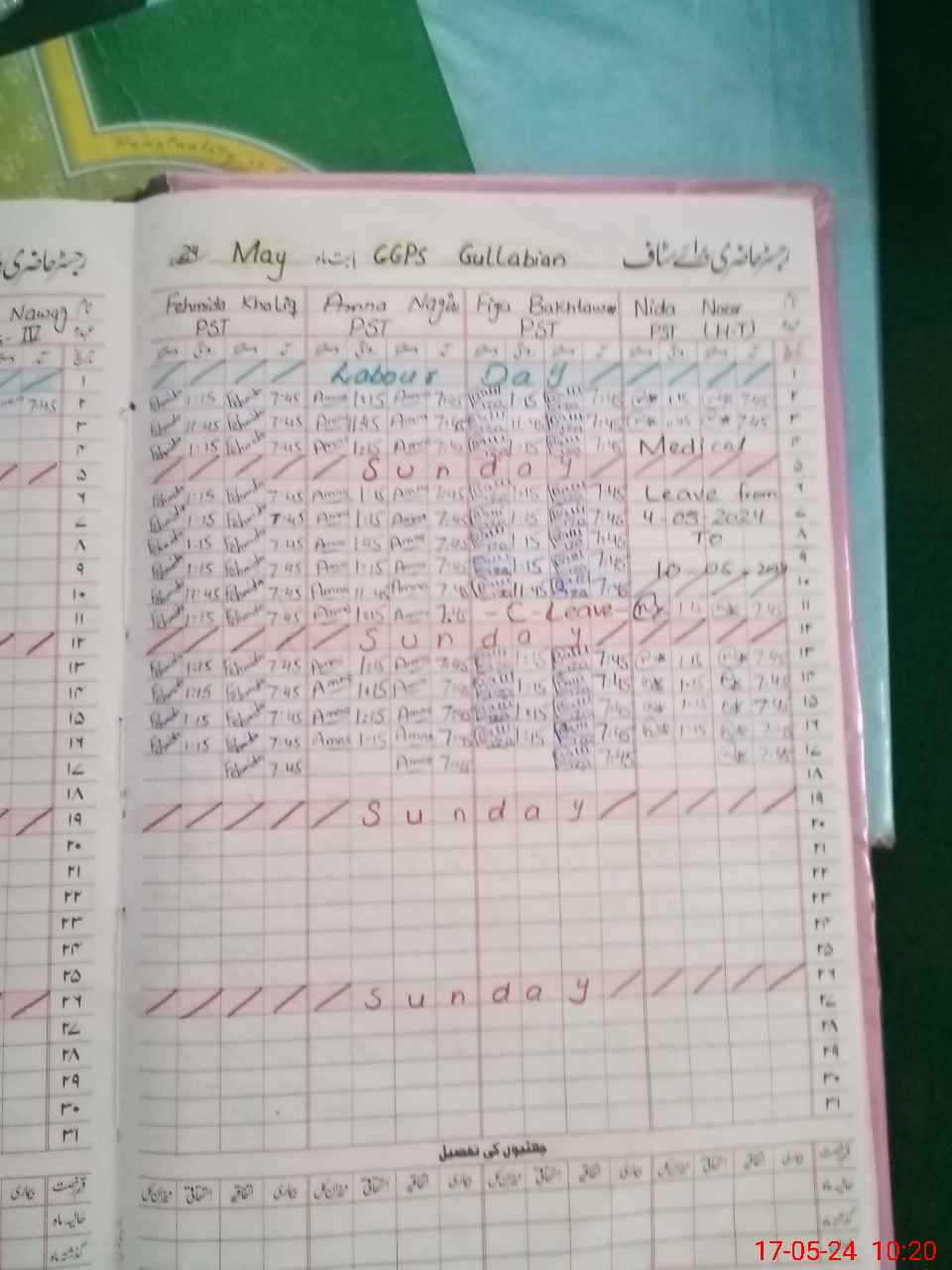 | Leave | Duty | Absent | Maternity | Medical | Ex- Pak |
