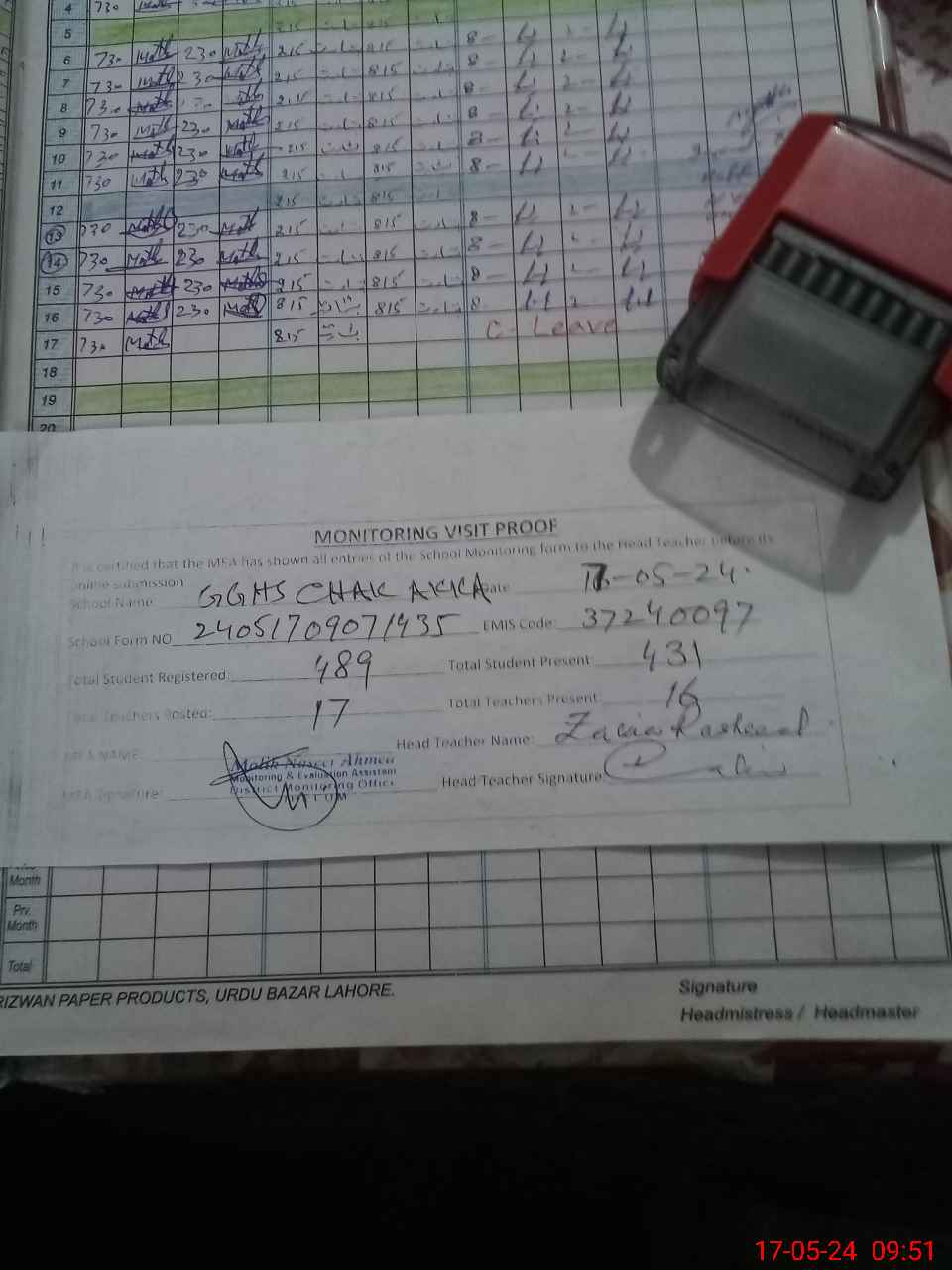 | EMIS Code: 37240097 | Name of School: GGHS CHAK AKKA | |||