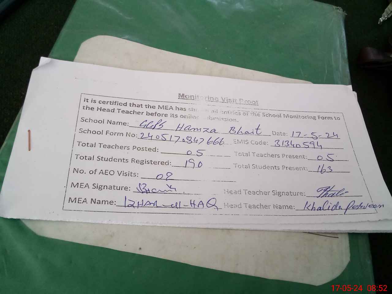 | EMIS Code: 31340594 | Name of School: GGPS HAMZA BHAIT | |||